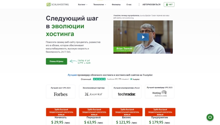 Тарифы в Scala Hosting стартуют с 29,95 долларов за месяц при условии покупки на 36 месяцев.